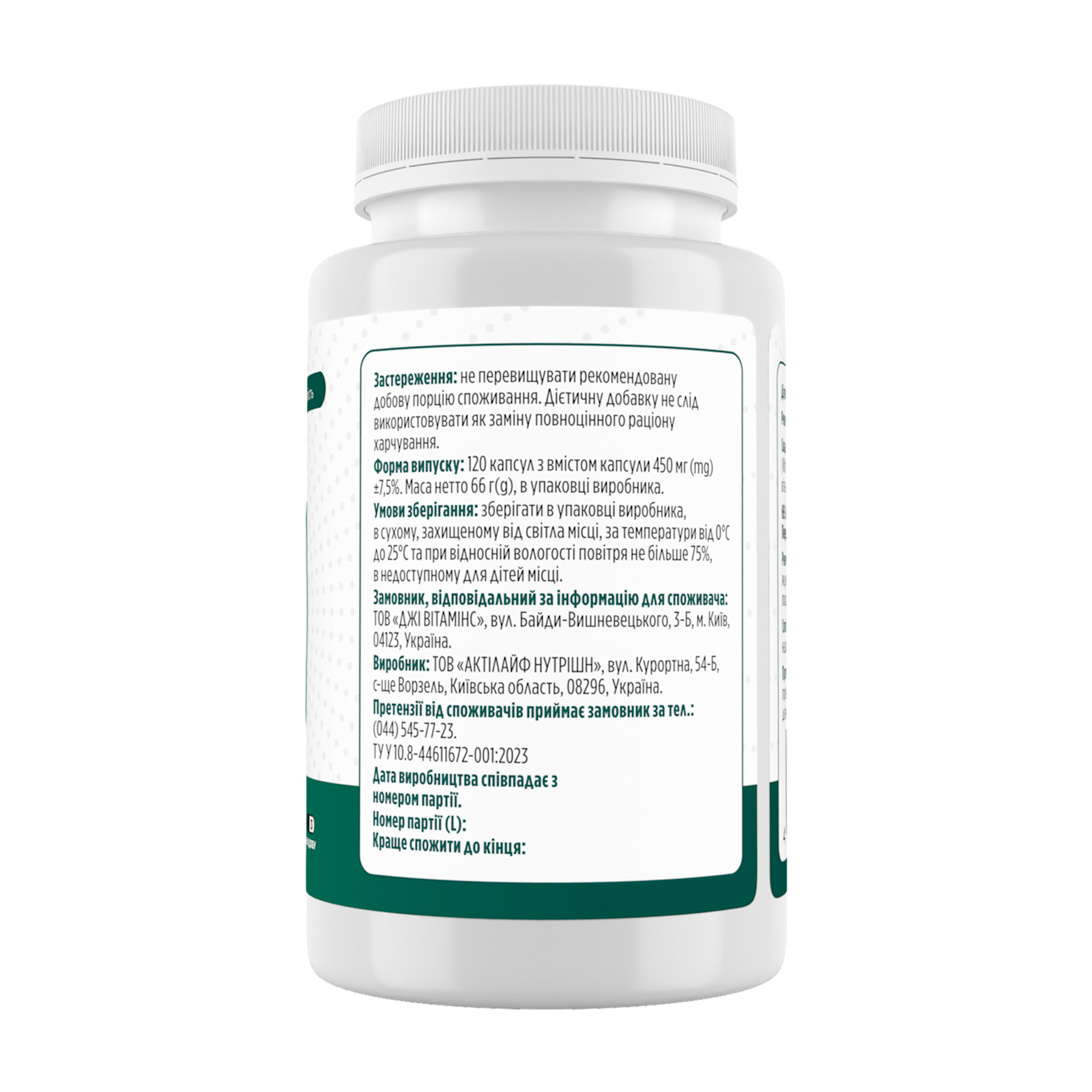 Об’єм: 120 капсул.