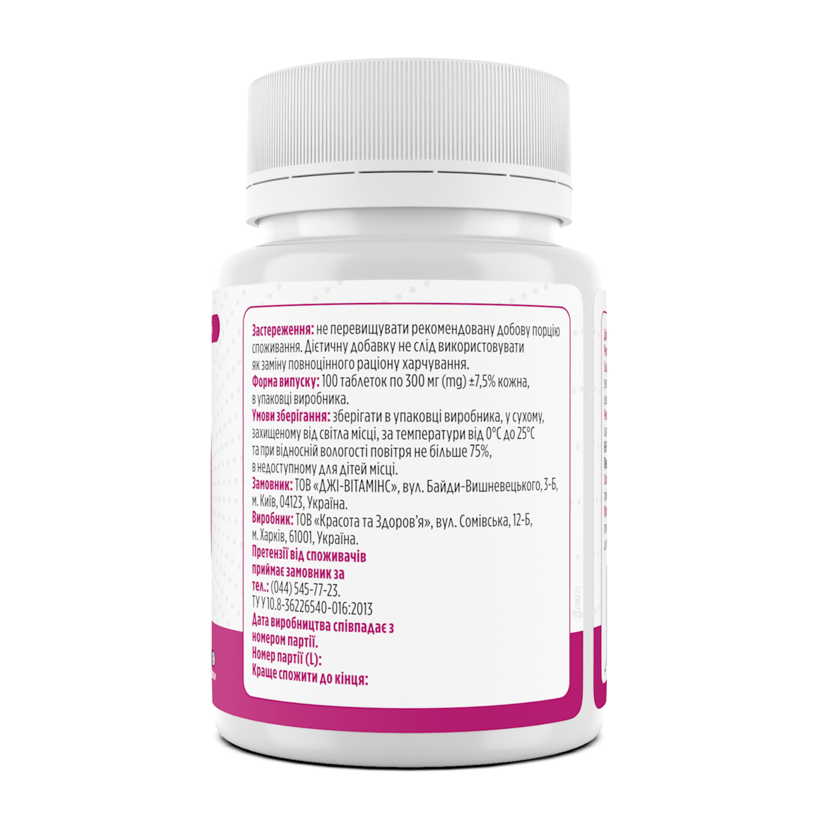 Об’єм: 100 таблеток.