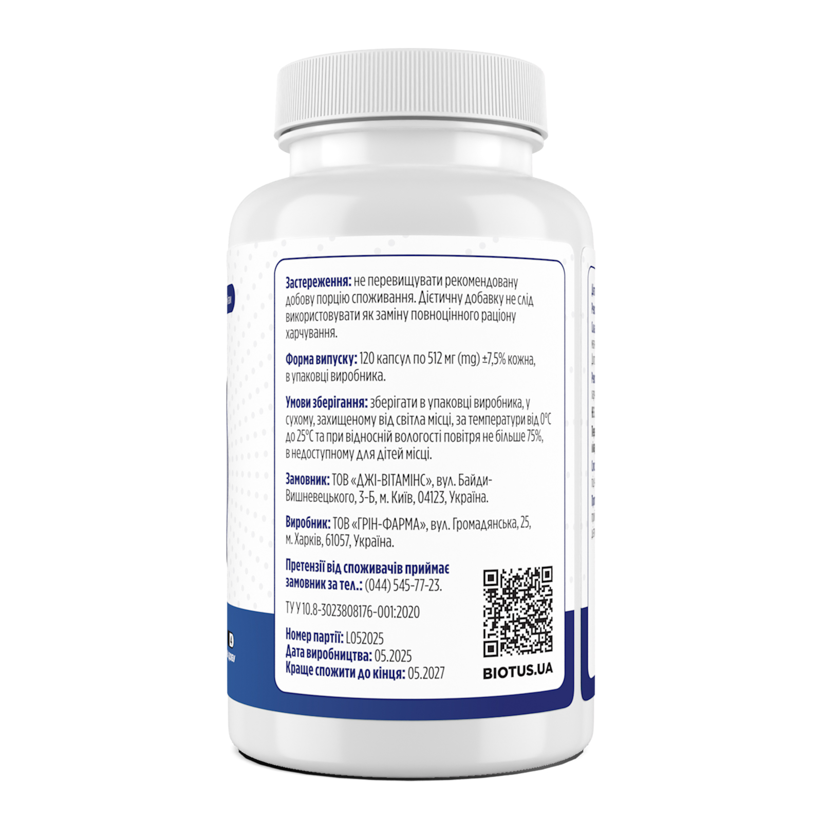 Об’єм: 120 капсул.