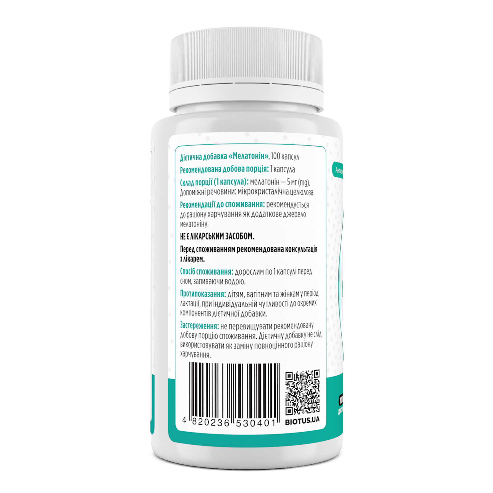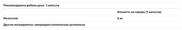 Склад порції: мелатонін – 5 мг (mg). Допоміжні речовини: мальтодекстрин.