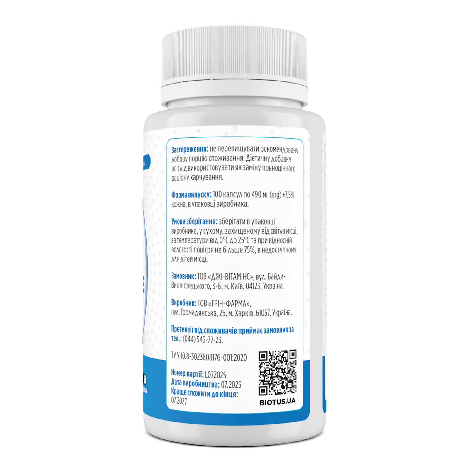 Об’єм: 100 капсул.