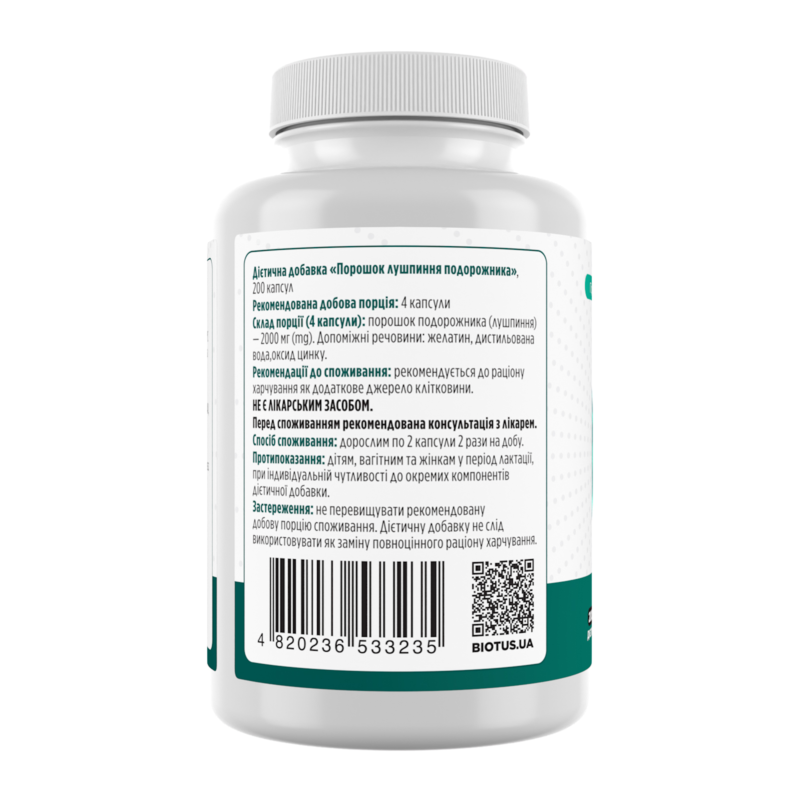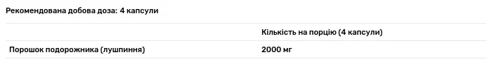 Склад порції: порошок подорожника (лушпиння) – 2000 мг (mg).