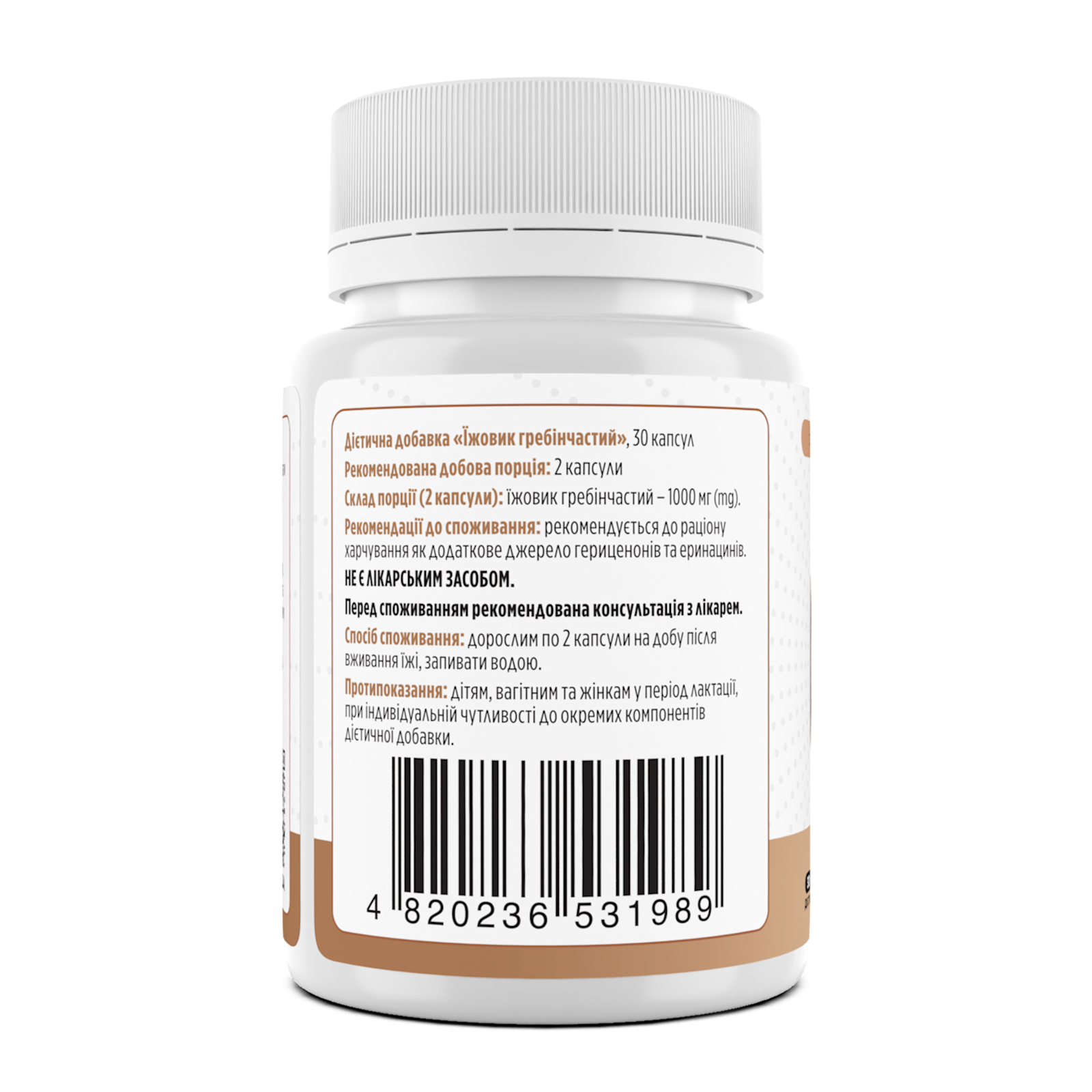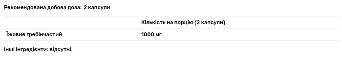 Склад порції: їжовик гребінчастий – 1000 мг (mg).